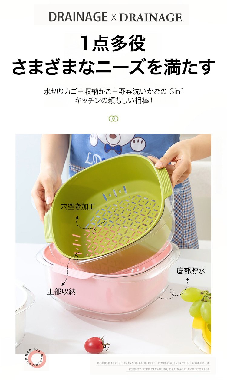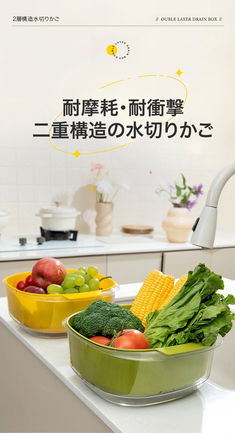 【1000回落下しても壊れない】多機能二重構造水切りカゴ